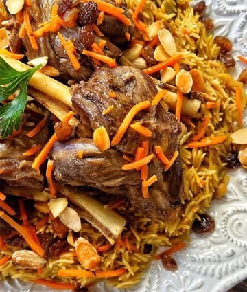 At Rashakana, our Kabuli Pulao embodies the essence of Afghan culture. This traditional dish features long-grain rice, delicately steamed in a seasoned broth, and served with tender lamb, thinly sliced carrots, kofta nakhod, and sweet raisins – creating a harmonious blend of flavors.